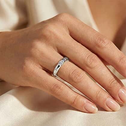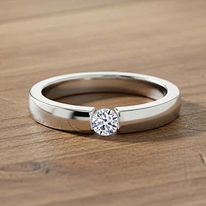 For those drawn to clean lines and simple settings, this modish lab grown diamond ring will certainly appeal to you. It features a sleek, modern band that gently curves inward to frame the single round-cut lab grown diamond. It renders the stone a floaty, ethereal feel. Lab grown diamonds display fire, brilliance and durability comparable to real diamonds. This solitaire lab grown diamond ring has a minimalist design and creates a clean, polished look. Crafted in rhodium overlay sterling silver, it features a sleek, smooth shank. Thus, this ring is perfect for those who prioritise comfort over opulent designs.