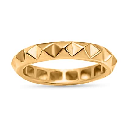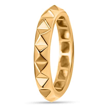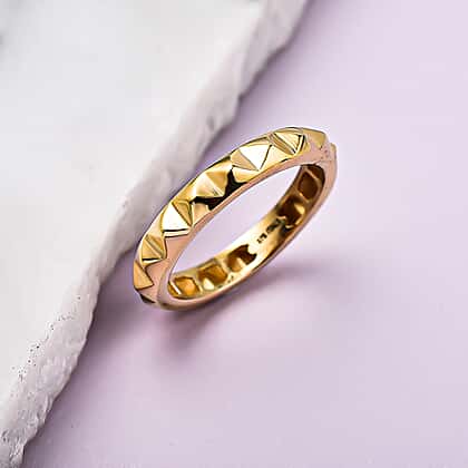 Adorn your fingers with this beautiful pyramid band ring. It is made from 9K yellow with a fine polish giving it a luxurious touch. This ring features a pyramid design on the outer band giving it one of a kind look. You can style this golden ring with your formal or casual wear outfits to elevate the look of your outfit.