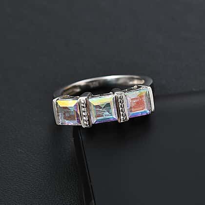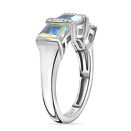 Mercury Mystic Topaz 3 Stone Ring in Rhodium Overlay Sterling Silver 2.60 Ct