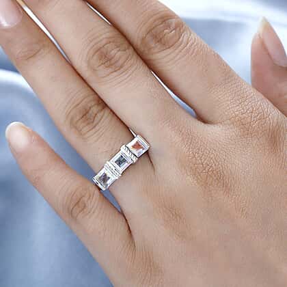 • Trilogy ring studded with Mercury Mystic Topaz gemstones