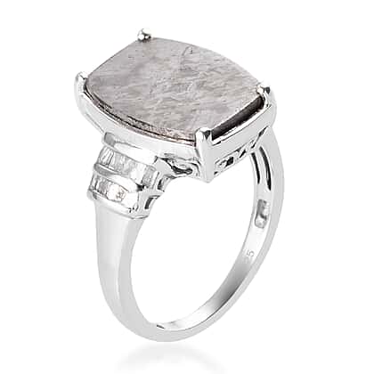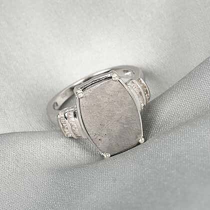Meteorite and Diamond Ring in Platinum Overlay Sterling Silver 13.16 Ct.