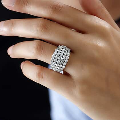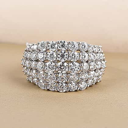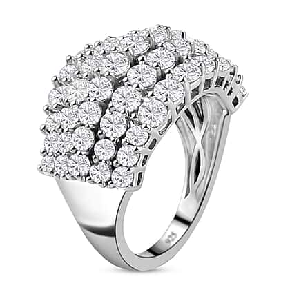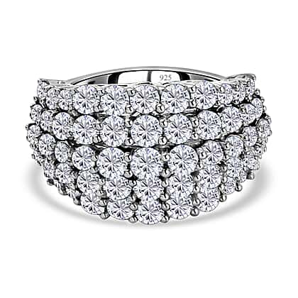 Moissanite Cluster Ring in Platinum Plated Sterling Silver 3.44 Ct, Silver Wt. 4.60 Gms