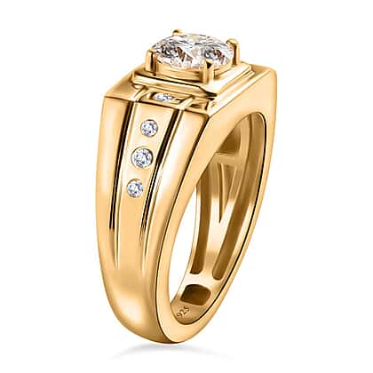Moissanite Mens Ring in 18K Vermeil Yellow Gold Plated Sterling Silver 1.04 Ct, Silver Wt. 6.40 Gms