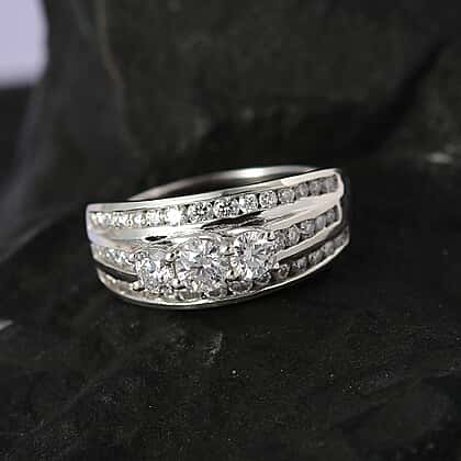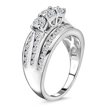 Moissanite Ring in Platinum Overlay Sterling Silver 1.41 Ct