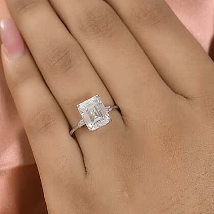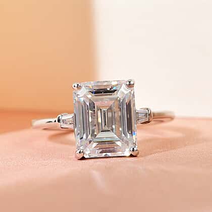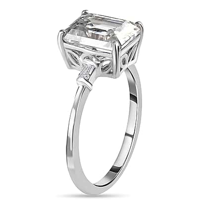 Moissanite Ring in Platinum Overlay Sterling Silver 3.731 Ct.