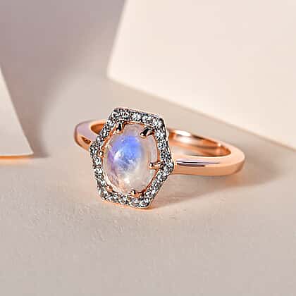 Moon Glow Stone & Natural Zircon Ring in Sterling Silver