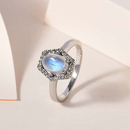 Moon Glow Stone & Natural Zircon Ring in Sterling Silver