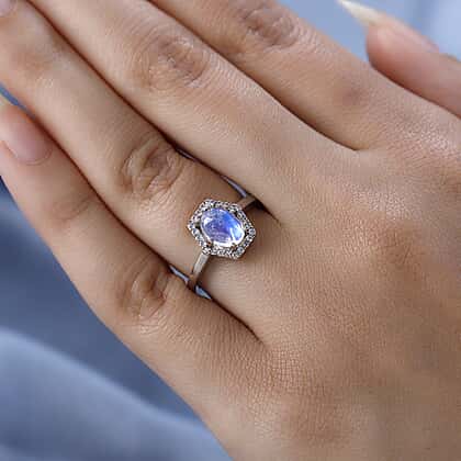 In a mystical forest, a gifted jeweller stumbled upon the captivating Premium Rainbow Moonstone and sparkling Natural Zircon. Inspired by nature's brilliance, he skillfully forged a breathtaking halo ring. As the sunlight danced on the gemstones, they radiated a kaleidoscope of colours, infusing the wearer with confidence and harmony. A timeless testament to the wonders of the universe.