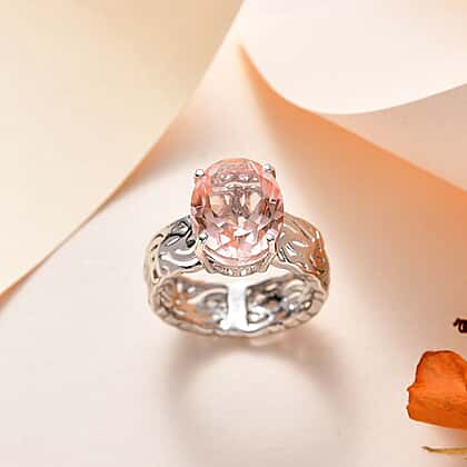 Morganique Triplet Quartz Ring in Platinum Overlay Sterling Silver 5.00 ct 5.359 Ct.