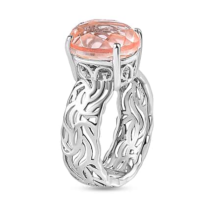 The Morganique triplet quartz ring is a stunning display of creativity and style. Featuring a bold, beautiful triplet quartz set in an artistically designed band with a unique side gallery, this ring in platinum overlay sterling silver is a true work of art that promises to catch the eye and captivate the heart. Pair this morganite quartz ring with your favourite dress for an enchanting appearance.