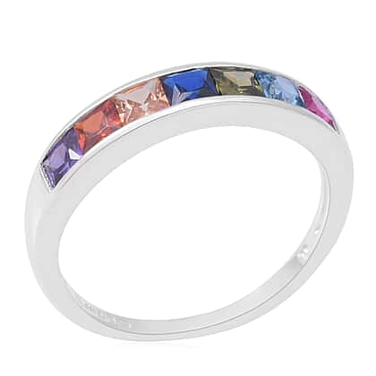 ELANZA Simulated Multi Colour Diamond Ring in Sterling Silver