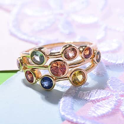 Multi Sapphire Bubble Ring in 18K Vermeil YG Plated Sterling Silver 2.00 Ct.