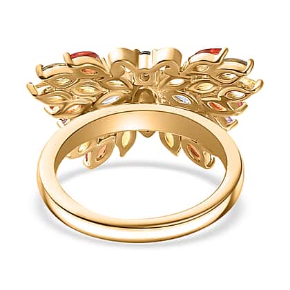Rainbow Sapphire, Natural Zircon and Montana Sapphire Butterfly Ring in 18K Yellow Gold Vermeil Plated Sterling Silver 2.61 Ct