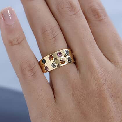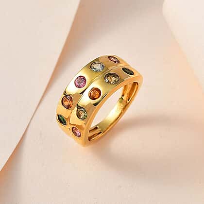 Multi-Tourmaline Band Ring in 18K Vermeil Yellow Gold Plated Sterling Silver 1.20 Ct