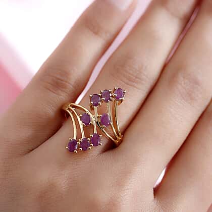 Natural Moroccan Ruby Bypass Ring in 14K Gold Overlay Sterling Silver 1.70 Ct.