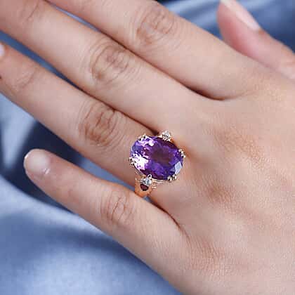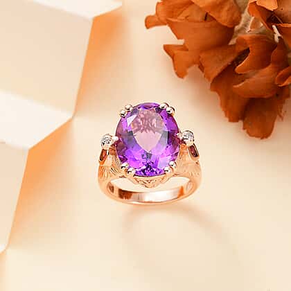 Natural Rose De Morocco Amethyst, Rhodolite Garnet, White Zircon Ring in 18K Rose Gold Vermeil Plated Sterling Silver