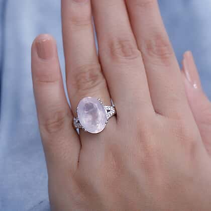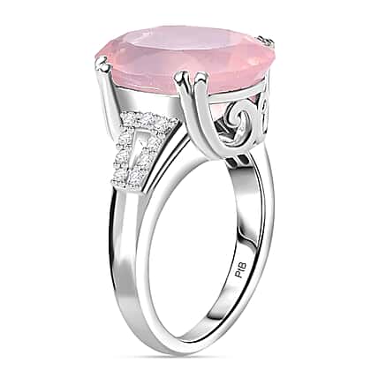 Natural Rose Quartz, Natural White Zircon Ring in Silver tone 8.43 Ct.
