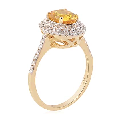 1.93 Ct Loupe Clean AA Chanthaburi Yellow Sapphire and Diamond Halo Ring in 14K Gold 2.98 Grams