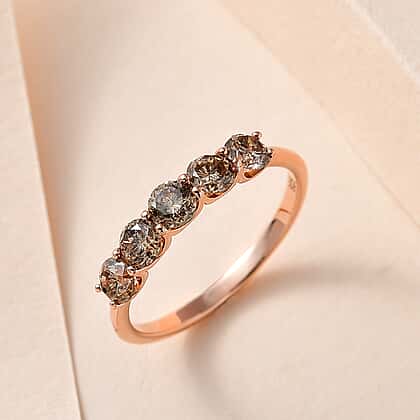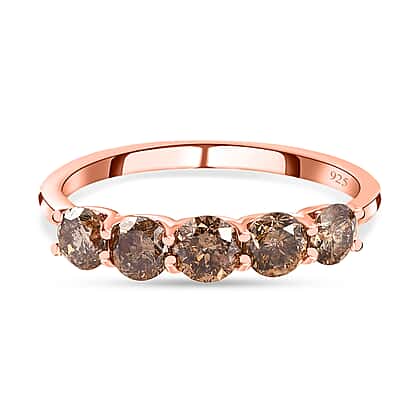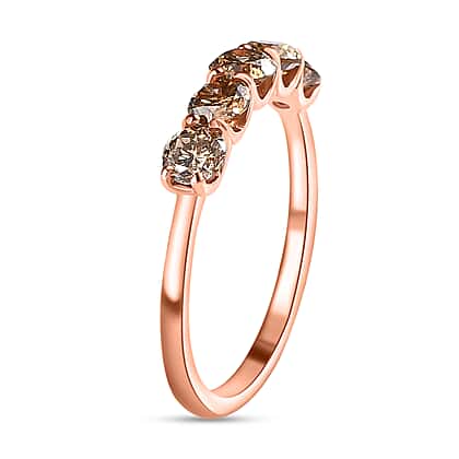NY Close Out- Natural Champagne Diamond 5 Stone Ring in 18K Vermeil RG Plated Sterling Silver 1.00 Ct