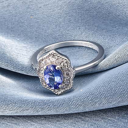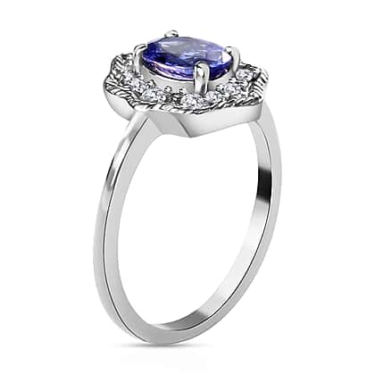 0.88 Ct. Tanzanite and Natural Cambodian Zircon Floral Glory Ring in Platinum Plated Sterling Silver
