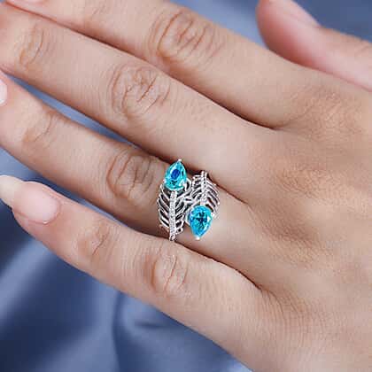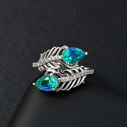The two ends of a bypass shank have been remodelled on the Peacock feathers in this Peacock triplet quartz and White Zircon Ring. The triplet quartz, a gemstone that displays a range of vivid colours, stands out against the Sterling Silver shank. The bypass ring looks fabulous in the nature-inspired design. Rhodium finish polishes the beauty of silver jewellery.