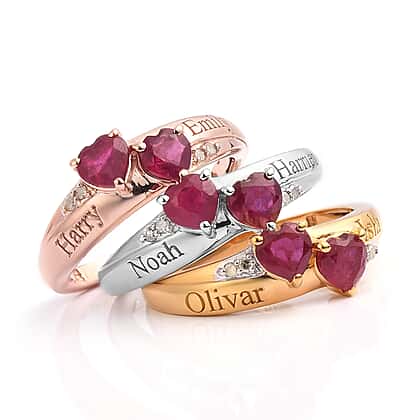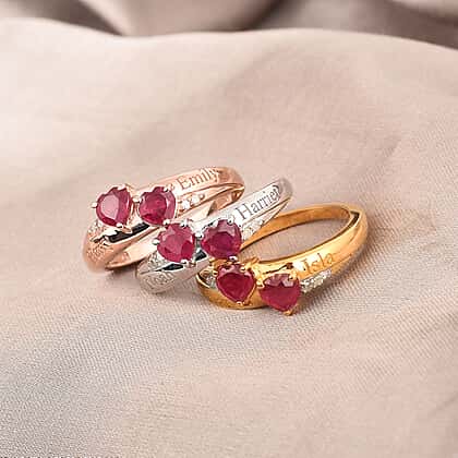 Personalised Engravable Double Heart Ruby Ring in Silver