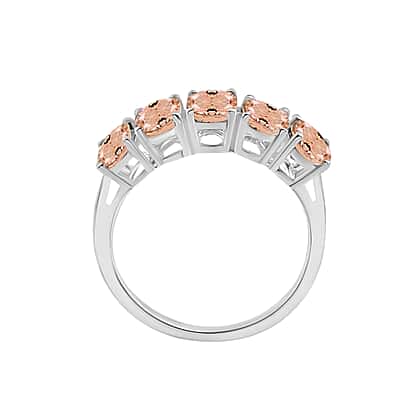 Pink Morganite 5 Stone Ring in Platinum Overlay Sterling Silver 2.75 ct 2.750 Ct.