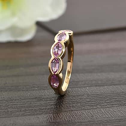 1.2 Ct. Pink Sapphire 5 Stone Ring in Gold Plated Sterling Silver