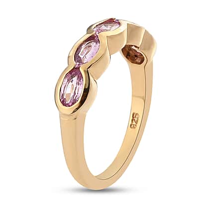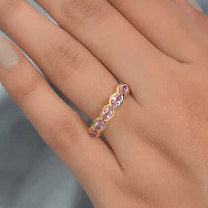 Pink Sapphire (FF) 5 Stone Ring in Yellow Gold Overlay Sterling Silver 1.28 Ct.