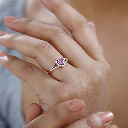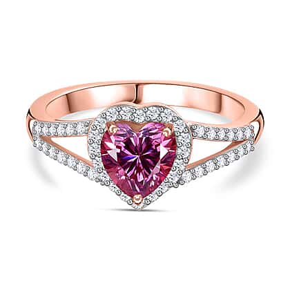 Pink & White Moissanite Heart Ring in 18K Rose Gold Vermeil Plated Sterling Silver 1.30 Ct.