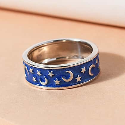 - Blue enamelled ring features a crescent moon and star