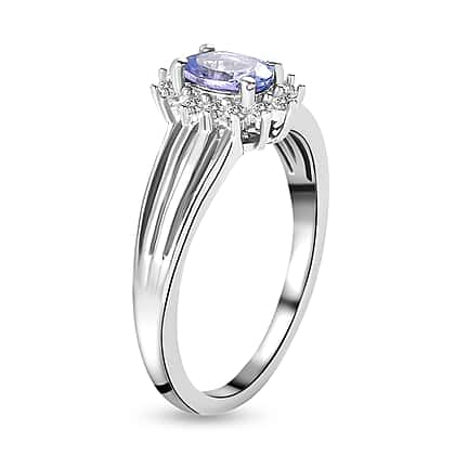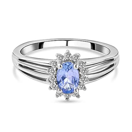Tanzanite Princess Diana Inspired Halo Ring with Natural Cambodian Zircon in Sterling Silver