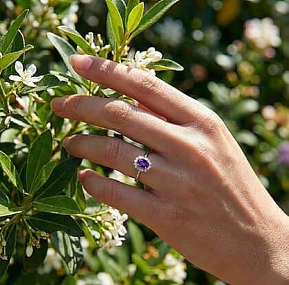 - Gemstone:Oval faceted amethyst is the main gemstone surrounded by 12 round-cut Natural Cambodian Zircon which is adding an extra sparkle to the overall look of the sterling silver ring.