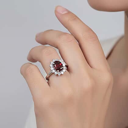 - Gemstone:Oval faceted Mozambique garnet is the main gemstone surrounded by 12 round-cut Natural Cambodian Zircon which is adding an extra sparkle to the overall look of the sterling silver ring.