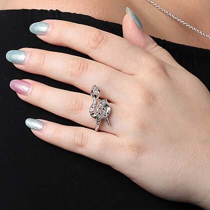 RACHEL GALLEY Venom Collection - Black Spinel Coiled Serpent Ring in Rhodium Plated Sterling Silver