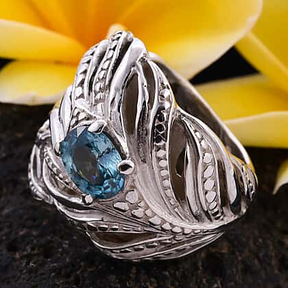 Royal Bali Collection 2.77 Carat Natural Blue Ratnagiri Zircon Feather Design Ring in Sterling Silver