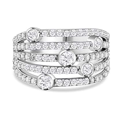 Red Carpet Collection - Zirconia Multi Row Bubble Ring in Rhodium Overlay Sterling Silver, Silver Wt. 5.70 Gms