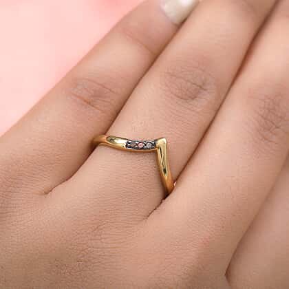 Red Diamond Wishbone Band Ring in 18K Vermeil Yellow Gold Plated Sterling Silver 0.05 Ct