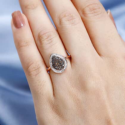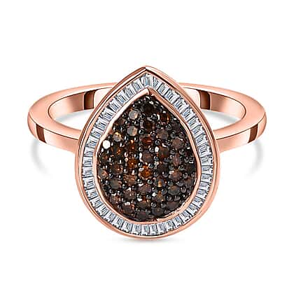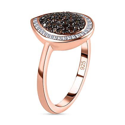 Red & White Diamond Teardrop Ring in 18K Vermeil Rose Gold Plated Sterling Silver 0.50 Ct