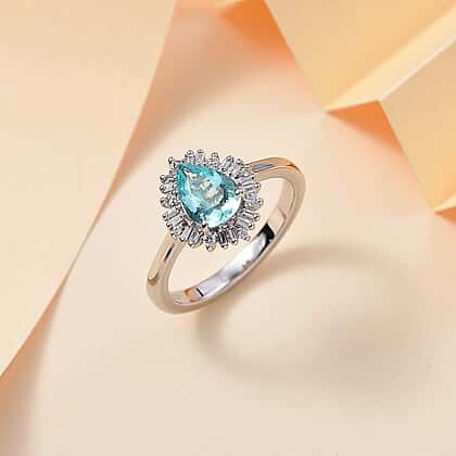 RHAPSODY 950 Platinum AAAA Paraiba Tourmaline, White Diamond EF, VS Halo Ring 1.39 ct.