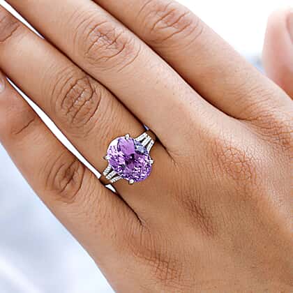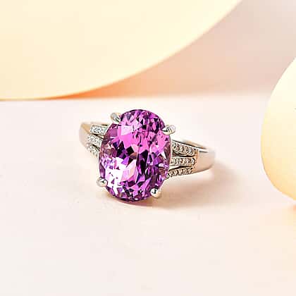RHAPSODY 950 Platinum AAAA Patroke Kunzite and Diamond (VS-E-F) Ring 8.79 Ct, Platinum Wt. 7.31 Gms