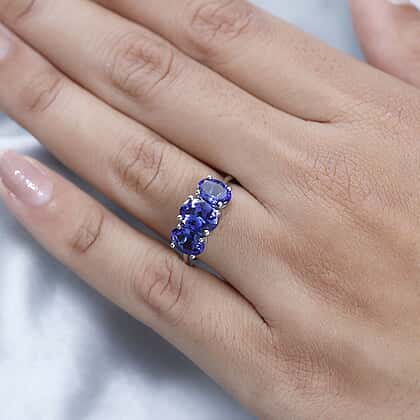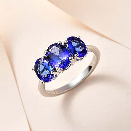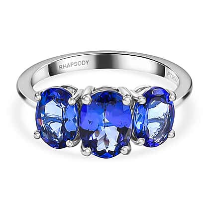 RHAPSODY 950 Platinum AAAA Tanzanite 3 Stone Ring 3.12 Ct.