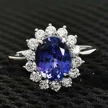 RHAPSODY 3.781 Ct AAAA Tanzanite and VS E-F White Diamond Halo Ring in 950 Platinum