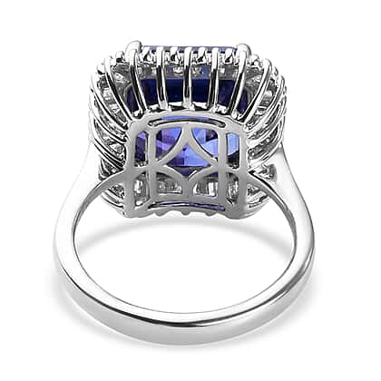 RHAPSODY 950 Platinum AAAA Tanzanite (9.15 Ct) and Diamond (VS-E-F) Halo Ring 10.15 Ct, Platinum wt. 8.93 Gms