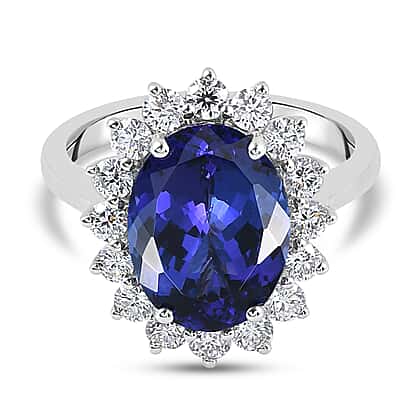 RHAPSODY 950 Platinum AAAA Tanzanite and Diamond Ring 6.77 Ct, Platinum wt. 7.25 Gms