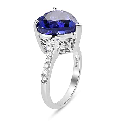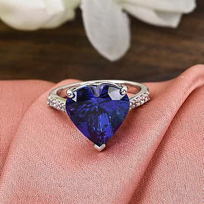 - GEMSTONE CUT & CARAT: A 5 ct, heart cut Tanzanite is set in prong setting and then round cut 14 diamonds of 0.26ct