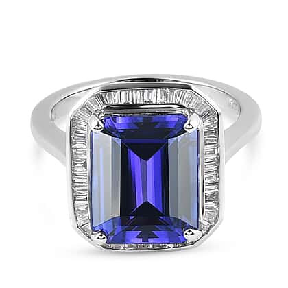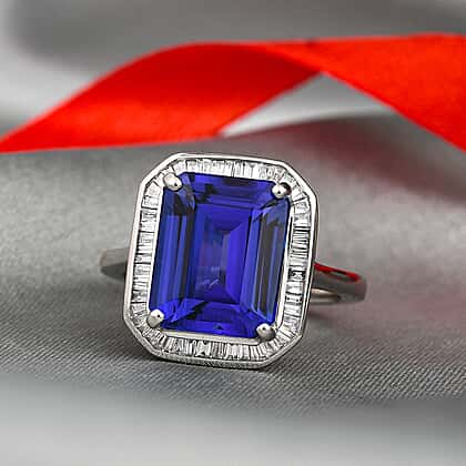 - STONE DETAILS: An octagon cut and faceted cut AAAA Tanzanite offer a royal blue flicker while Baguette faceted cut Diamonds surround it through prongs in a halo design