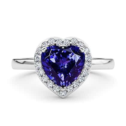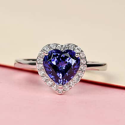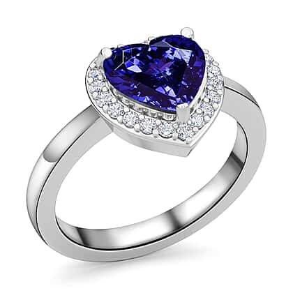 RHAPSODY 950 Platinum 2.18 Ct. Halo AAAA Tanzanite Ring with VS E-F Diamond