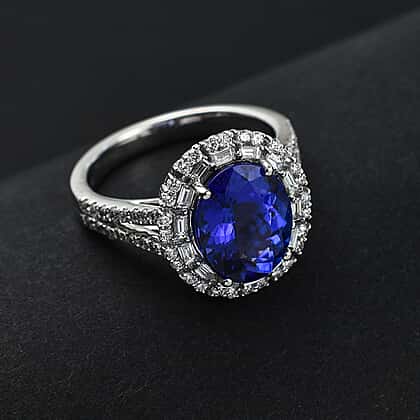 RHAPSODY 950 Platinum AAAA Tanzanite & Diamond (VS-E-F) Ring 5.70 Ct, Platinum Wt. 7.25 GM