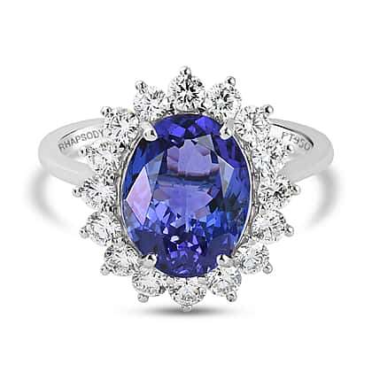 RHAPSODY AAAA Tanzanite and Diamond (VS-E) 6.00 Ct. Ring 950 Platinum, Platinum Wt 5.89 Gms